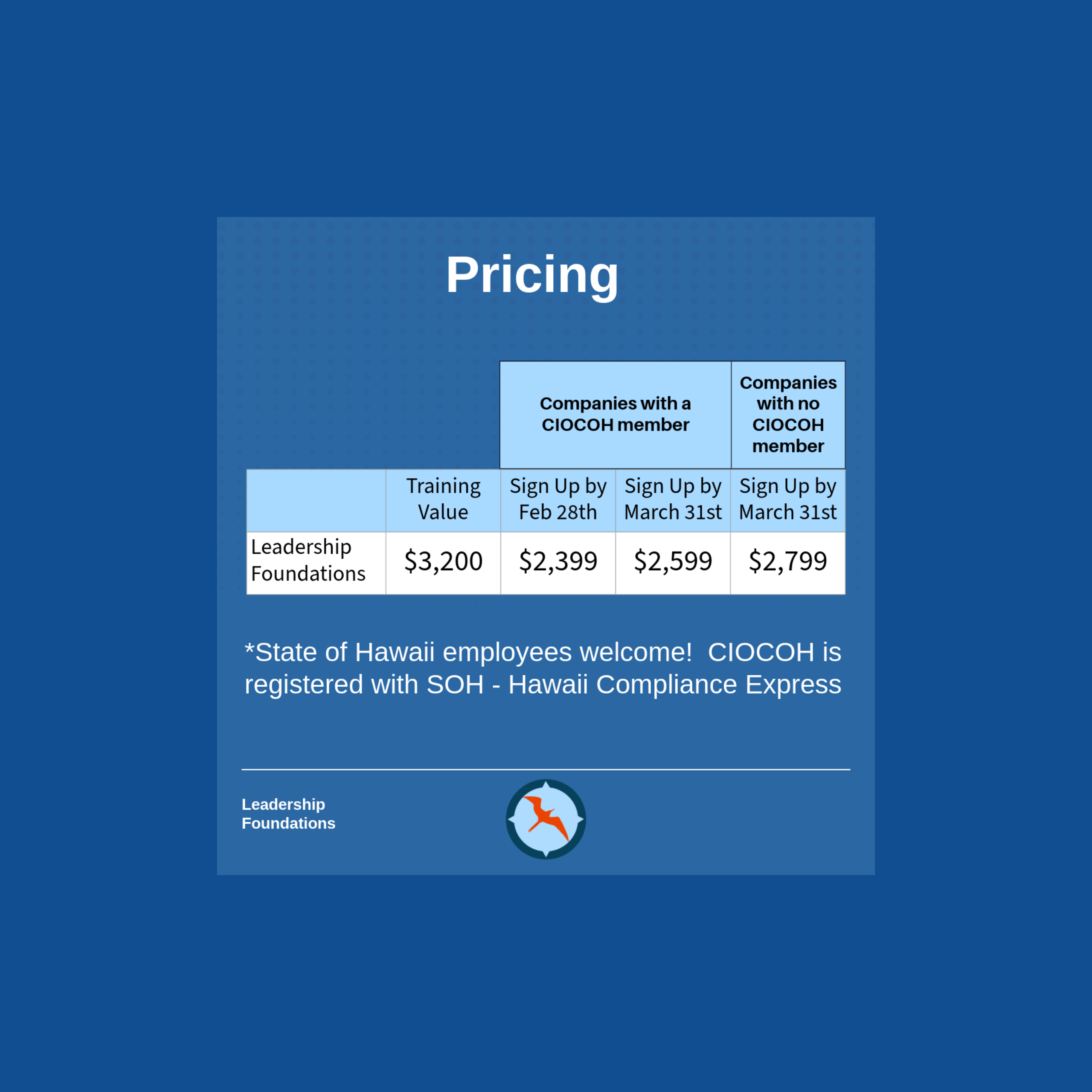 Cohort participants will get access to networking opportunities to Hawaii’s IT leadership community. The CIOCOH will make available access to some exclusive CIOCOH events.
